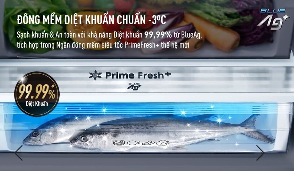 Ngăn Prime Fresh+ giúp thực phẩm tươi sống được bảo quản thơm ngon, đầy đủ chất dinh dưỡng