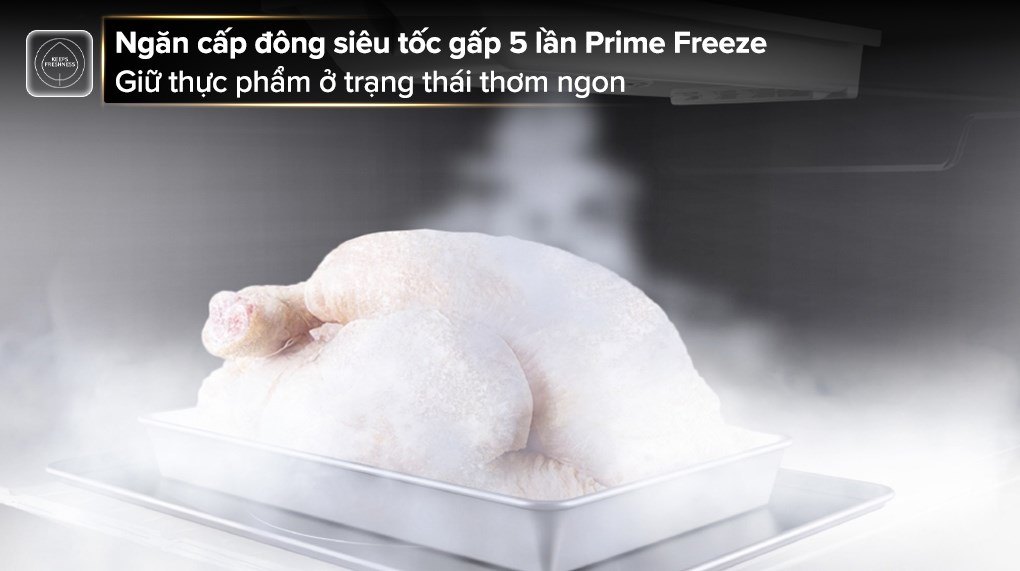 - Ngăn cấp đông siêu tốc Prime Freeze 3 chế độ đông thực phẩm nhanh chóng.