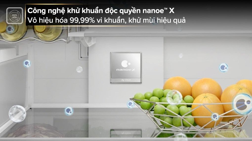 - Công nghệ Nanoe X - Ag Clean diệt 99.99% vi khuẩn, khử mùi bảo vệ thực phẩm.