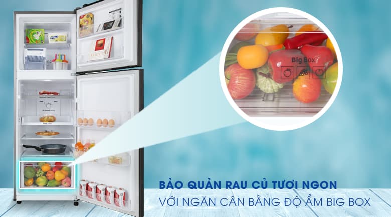 + Bảo quản rau củ tươi ngon với ngăn cân bằng độ ẩm Big Box.