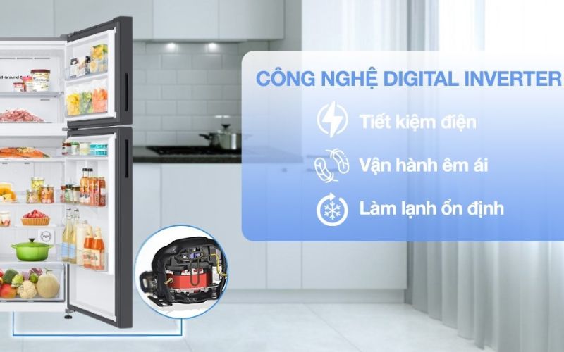 Tủ lạnh Samsung Inverter 385 lít Bespoke RT38CB668422SV có ứng dụng công nghệ Digital Inverter giúp công suất hoạt động được điều chỉnh phù hợp theo từng nhu cầu làm lạnh, nâng cao hiệu suất làm lạnh, vận hành êm ái, có tuổi thọ cao, tiết kiệm điện năng vượt trội.