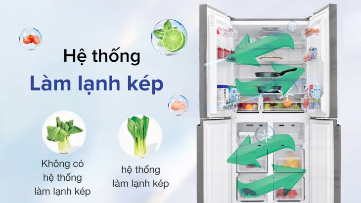 Hệ thống làm lạnh đa chiều phân bổ khí lạnh đồng đều giúp thực phẩm luôn tươi ngon
