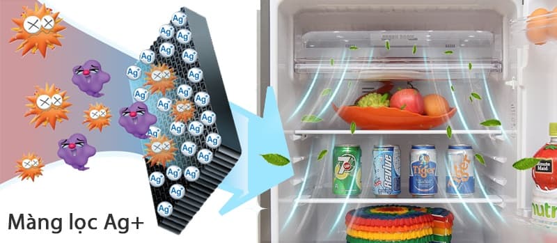 Sản phẩm là một trong những dòng tủ lạnh hiện đại nhất có trang bị bộ lọc khử mùi kháng khuẩn Nano bạc đồng. Mọi vi khuẩn dù có kích thước siêu nhỏ hay những mùi hôi khó chịu đều được bộ lọc khử sạch hiệu quả. Mỗi khi mở cửa tủ lạnh bạn sẽ thấy mùi thơm dễ chịu hơn, đồng thời tạo nên môi trường bảo quản sạch khuẩn, giữ sự tươi ngon, dưỡng chất cho thực phẩm, an toàn cho sức khỏe người sử dụng.