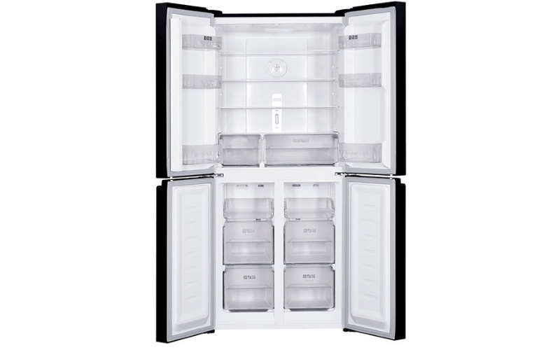 Tủ lạnh Sharp Inverter Multi Door 421 lít SJ-FXP510VG-BK sở hữu thiết kế nổi bật Multi Door 4 cánh sang trọng, mặt kính đen cao cấp dễ lau chùi, vệ sinh, luôn sáng bóng, điểm nhấn hiện đại cho mọi gian bếp.