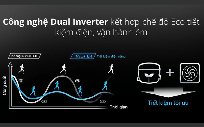 Công nghệ Dual Inverter và Eco vận hành êm ái, tiết kiệm điện năng.