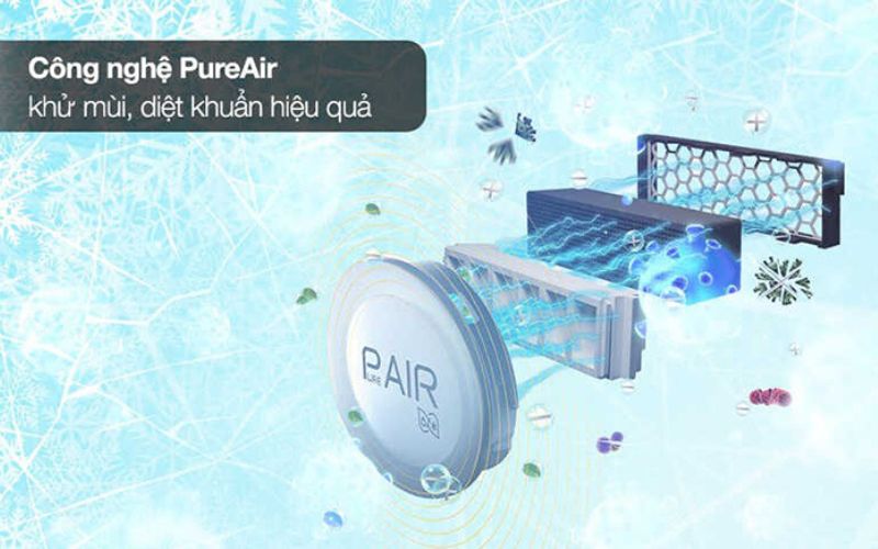 Công nghệ PureAir Turbo khử mùi, diệt khuẩn đến 99.99% chỉ sau 60 phút.