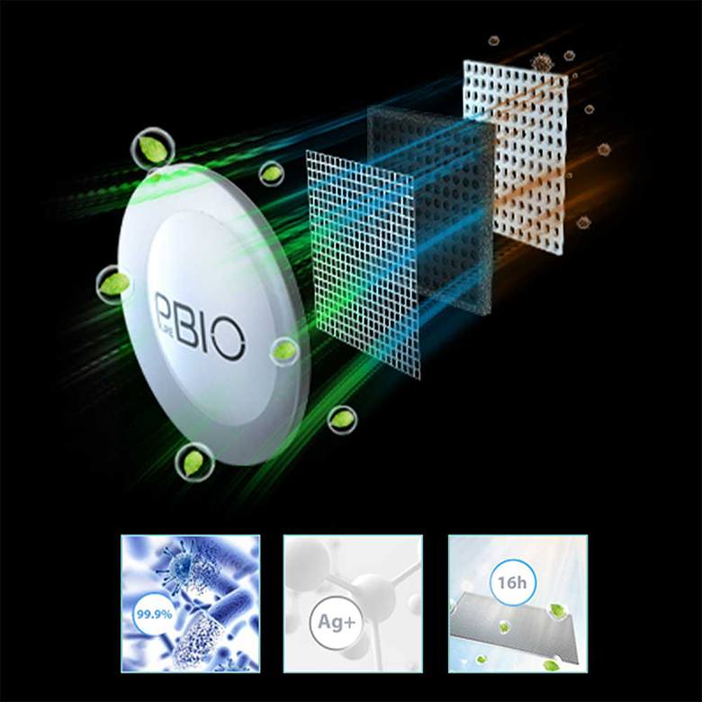 Hệ thống Pure BIO bao gồm bộ lọc PureBio làm bằng gốm sứ Ceramic có hình dạng tổ ong nhúng các tinh thể bạc Ag+ cùng với than hoạt tính. Hệ thống này sẽ loại bỏ triệt để các mùi hôi khó chịu có gốc Sulfur, Nitrogen phân hủy từ thực phẩm, đồng thời triệt bỏ mọi vi khuẩn, các tác nhân gây hại. Môi trường bên trong tủ lạnh sẽ luôn duy trì sự trong lành, tươi mát, giữ thực phẩm luôn tươi ngon, không bị hư hỏng. Bộ lọc này vệ sinh rất đơn giản chỉ cần tháo bộ lọc rửa rồi phơi dưới nắng trong vòng 16h rồi tái sử dụng bình thường.