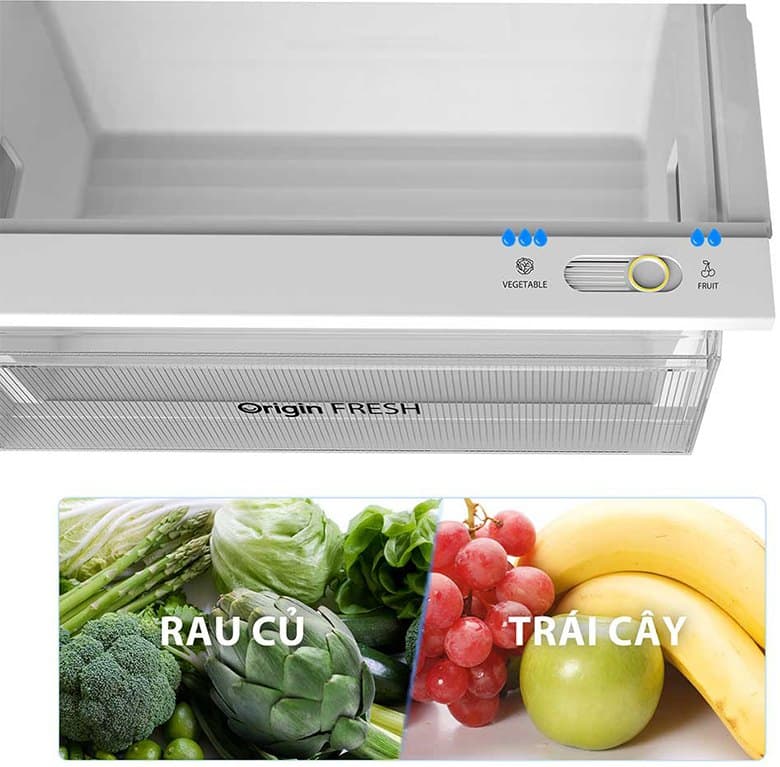 - Ngăn giữ ẩm Origin Fresh duy trì độ ẩm từ 60 - 80% giữ rau củ quả luôn tươi xanh.