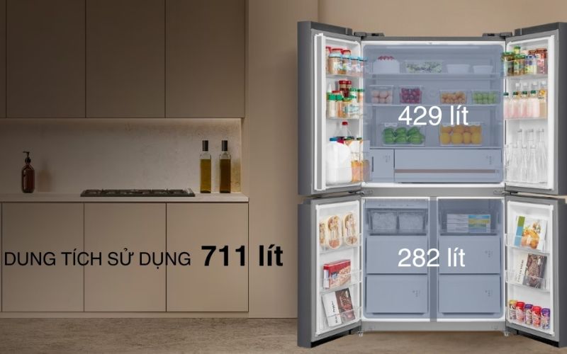 Dung tích lớn 711 lít bảo quản lượng lớn, đa dạng nhiều loại thực phẩm