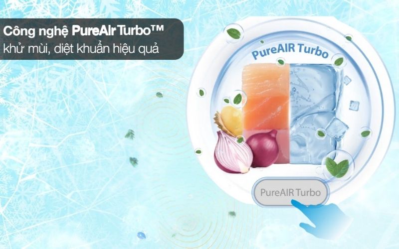 Nhằm đảm bảo không gian tủ luôn sạch mùi, bảo quản thực phẩm tươi ngon, nguyên hương vị, trọn dưỡng chất, đảm bảo an toàn cho sức khỏe gia đình, thiết bị có tích hợp bộ lọc tiên tiến PureAir Turbo. Bộ lọc có cơ chế lọc liên tục, mạnh mẽ, tiến hành khử bỏ mùi hôi, đánh bay, ngăn ngừa sự phát sinh, phát triển của vi khuẩn nên trong tủ luôn sạch sẽ, thơm mát.