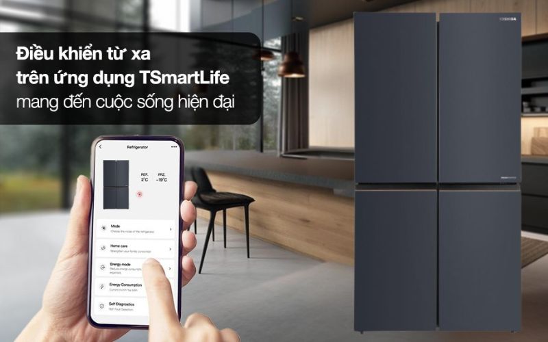 Tủ lạnh Toshiba Inverter 711 lít Multi Door GR-RF900WI-PMV(06)-MG kết nối thông minh với ứng dụng TSmartLife nên mọi lúc, mọi nơi, đều có thể dễ dàng giám sát hoạt động, chỉnh nhiệt độ, độ ẩm.