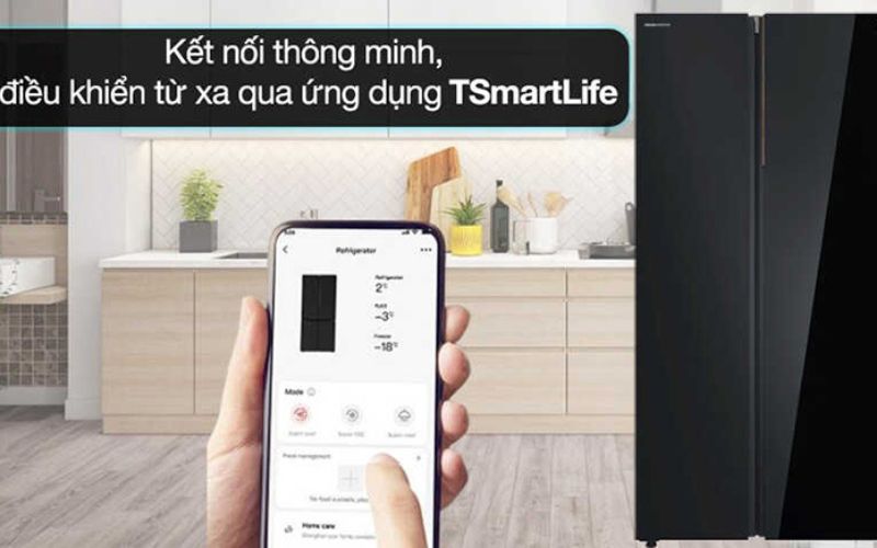 Tủ lạnh Toshiba Side By Side Inverter 711 lít GR-RS905WIA-PGV(22)-XK kết nối nhanh với ứng dụng TSmartLife dưới sự hỗ trợ AI cho người dùng từ xa, mọi lúc mọi nơi qua điện thoại của mình điều khiển, tùy chỉnh máy dễ dàng, tiện lợi. Ứng dụng còn có cung cấp tính năng mới như Turbo Mode làm lạnh nhanh, Autolce tạo đá tự động nhanh, bảo quản tươi ngon, sử dụng tiện lợi, có hiệu suất cao mà còn rất tiết kiệm điện năng.