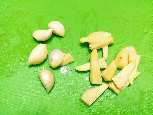 Bước 2: Tỏi đem bóc vỏ rửa sạch, gừng cạo vỏ rồi thái lát cho dễ xay.