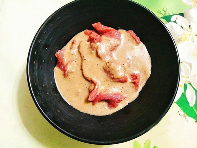 Bước 4: Cho thịt bò vào âu rồi đổ hỗn hợp gừng tỏi vừa xay vào cùng, trộn thật đều và ướp 1-2 tiếng cho thịt ngấm gia vị.