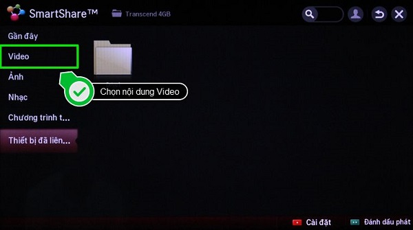 Bước 2: Lựa chọn nguồn dữ liệu đầu vào bạn muốn (USB, HMDI,...)