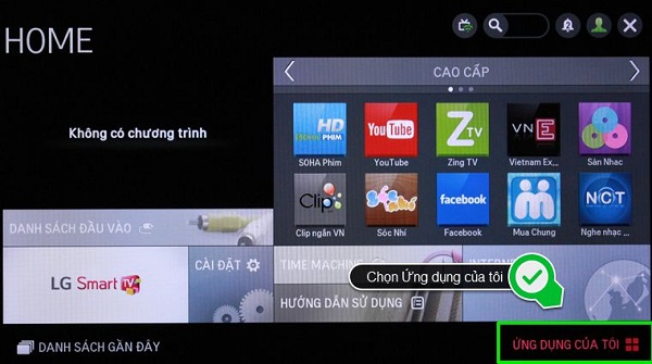 Nút MY APPS giúp truy cập nhanh vào kho ứng dụng trên tivi, hiển thị đầy đủ danh sách các ứng dụng được tích hợp với sẵn với tivi và các ứng dụng được bạn tải về. Các thao tác sử dụng nút MY APPS