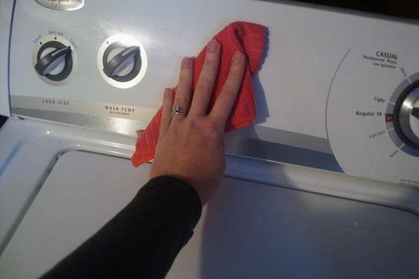Bước 7: Cuối cùng sau khi máy giặt đã ráo nước, bạn có thể dùng miếng vải được giặt trong dung dịch dấm để loại bỏ hết cặn bẩn bám ở cạnh và đáy lồng giặt.