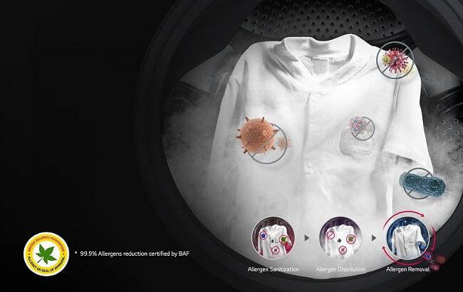 - Sử dụng máy giặt LG inverter FC1408S4W2 có thể tiêu diệt tới 99,9% những nguyên nhân dẫn tới vấn đề dị ứng. Máy giặt giờ đây còn giúp bạn bảo vệ sức khỏe cho các thành viên gia đình mình nhờ được trang bị công nghệ giặt hơi nước Spa Steam tiên tiến, công dụng loại bỏ bụi bẩn và các tác nhân gây dị ứng bên trong sợi vải.