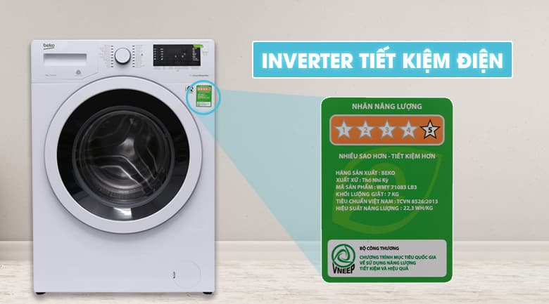3.Máy giặt cửa ngang Beko Inverter 7 kg WMY71083LB3