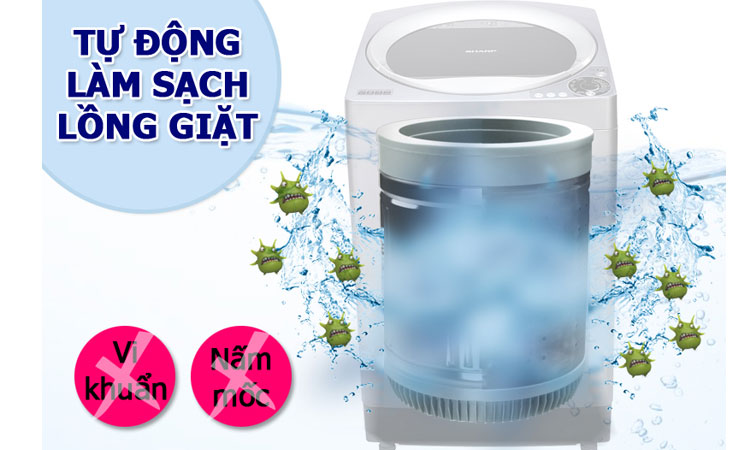 Sử dụng máy giặt Sharp ES-U80GV-H bạn sẽ đỡ vất vả hơn mỗi lần vệ sinh máy vì máy giặt có trang bị chế độ tự vệ sinh lồng giặt với khả năng loại bỏ các chất bụi bẩn và cặn bột giặt bám vào lồng sau nhiều lần giặt, giúp cho lồng giặt sạch sẽ, đảm bảo quần áo luôn được giặt sạch.